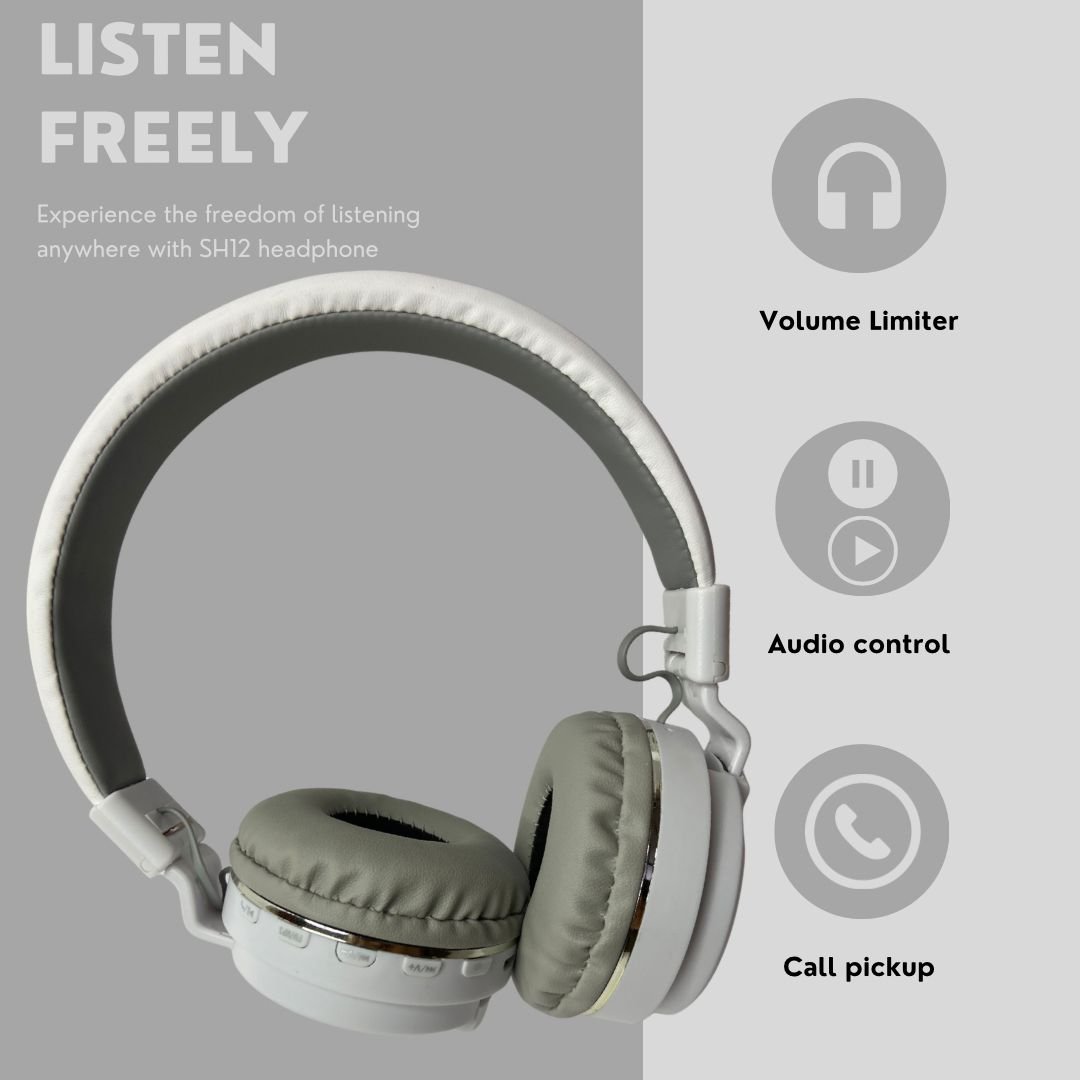 The SH12 Bluetooth headphone is meant for regular use. It’s a simple wireless headphone that people usually buy for daily listening — music, videos, online classes, and phone calls. There’s nothing overdone in the design. It’s practical, comfortable, and easy to use.